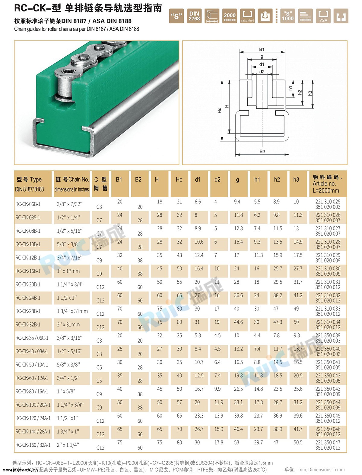 鏈條導(dǎo)軌-鏈條導(dǎo)向件 ,是一種(zhǒng)靜壓導(dǎo)軌 ,用於支撐和(hé)導(dǎo)向鏈條 ,減少鏈條磨(mó)擦 ,降低(dī)噪音 ,增強鏈條使用壽命 。採用840萬超高分子量(liàng)聚乙烯(UHMW-PE)生產 ,鏈條導(dǎo)軌具有高耐磨(mó)耐溫 ,抗(kàng)腐蝕 ,穩固 ,降噪音等高精度的支撐與(yǔ)導(dǎo)向 。