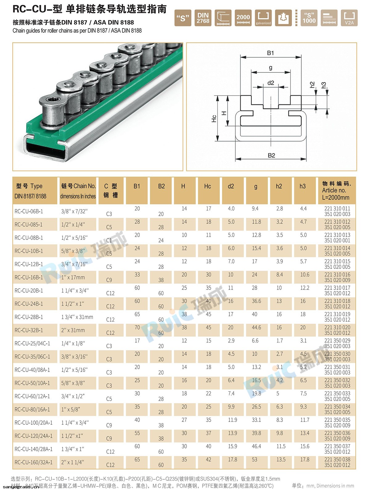 鏈條導軌-鏈條導向件 ,是(shì)一種(zhǒng)靜壓導軌 ,用於支(zhī)撐和導向鏈條 ,減少鏈條磨擦 ,降低噪音 ,增強(qiáng)鏈條使用壽命 。採用840萬超高分子量(liàng)聚乙烯(UHMW-PE)生產 ,鏈條導軌具有(yǒu)高耐磨耐溫 ,抗腐蝕 ,穩固 ,降噪音等高精度的支(zhī)撐與導向 。