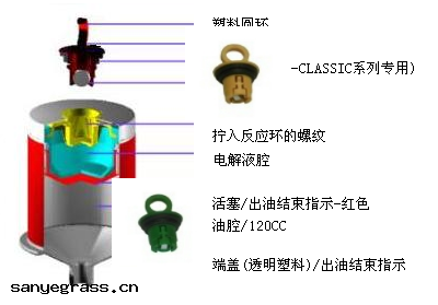 將塑料反應環擰入加油器 ,直到(dào)圓環被擰斷(duàn) ,環內的(de)金屬球被壓入電解液里(lǐ)併發生(shēng)化(huà)學反應 。化(huà)學反應產生(shēng)氣(qì)體(tǐ) ,氣(qì)體(tǐ)越多(duō) ,壓力越大 ,使活塞產生(shēng)向前運(yùn)動 ,潤滑脂/油就會連(lián)續不斷(duàn)地被擠出(chū)注入到(dào)加油嘴裡(lǐ) 。當潤滑油用(yòng)完時 ,出(chū)口端的(de)塑料蓋(gài)會看到(dào)活塞的(de)紅色 ,表(biǎo)明加油器內的(de)脂/油已(yǐ)用(yòng)盡 ,應該及時更換新的(de)加油器 。