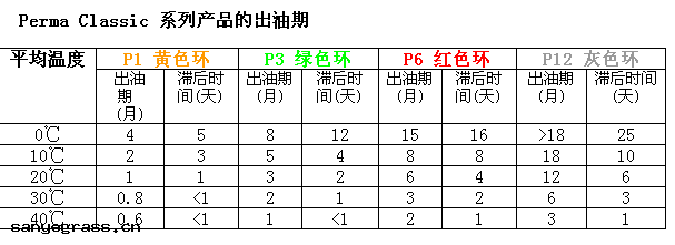 擰入反應環和擠出(chū)潤滑油或脂之(zhī)間的(de)滯後(hòu)時間 ,會因使用(yòng)不同(tóng)型(xíng)號(hào)的(de)加油器和不同(tóng)顏色的(de)反應環而有所(suǒ)不同(tóng) 。使用(yòng)不同(tóng)顏色的(de)反應環 ,出(chū)油時間就不一樣(yàng) :黃色-1個月 ,綠色-3個月 ,紅色-6個月 ,灰色-12個月 。具體(tǐ)請參考下表(biǎo) 。