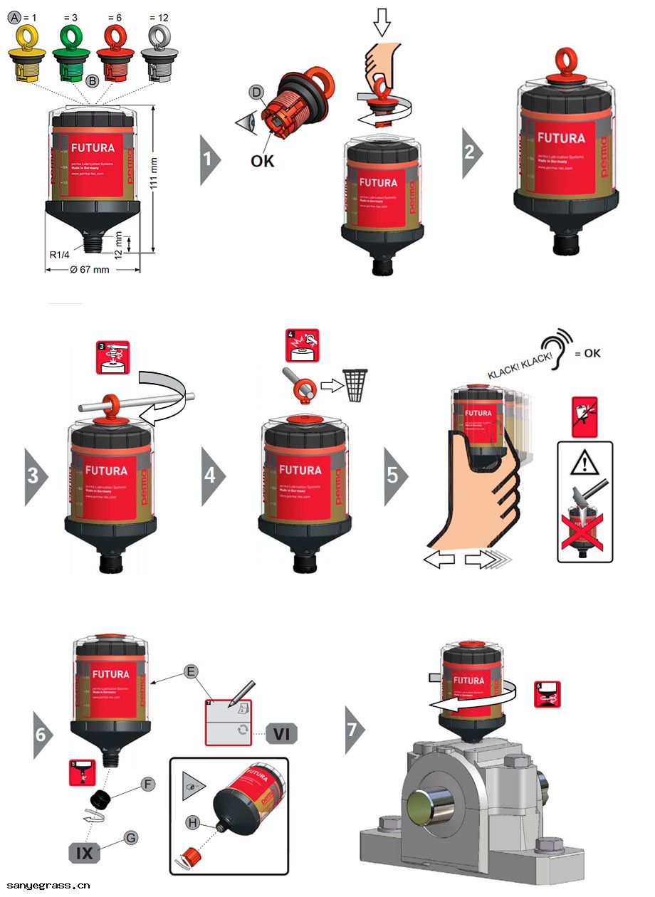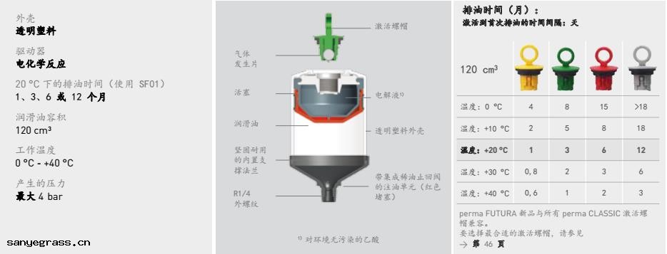 。其(qí)潤滑周(zhōu)期取(qǔ)決於按顏色(sè)區分(fèn)的激活螺(luó)帽
